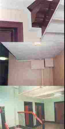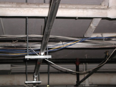 Corbel can place any kind of cable inside or outside of a commercial or residential building. We can run them in decorative molding, custom molding that may require hand mitering, through hung ceilings and walls, channel pathways underneath hallway carpeting, paint cables or conduits to match a buildings exterior or interior, and many other ways of unobtrusive concealment. In stairwells and other riser locations we can place any size of conduit and distribution boxes, core or hammer drill through walls or floors, place sleeves, and perform complete fire stopping and restoration.